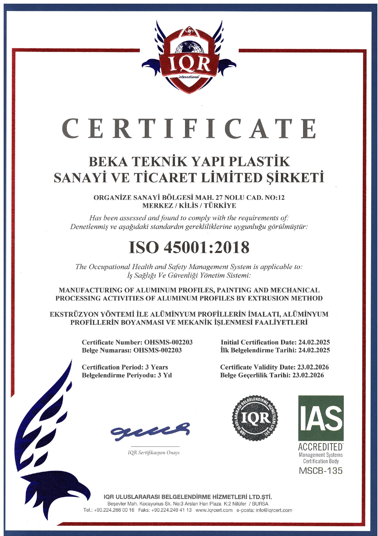 BEKA TEKNİK ISO 45001