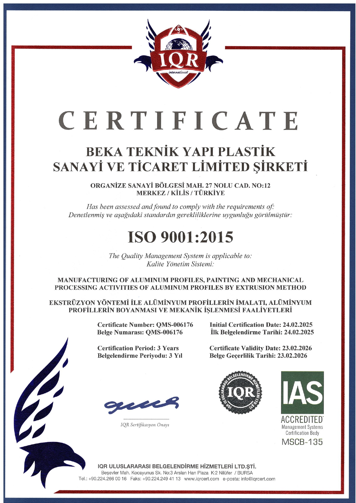 BEKA TEKNİK ISO 9001